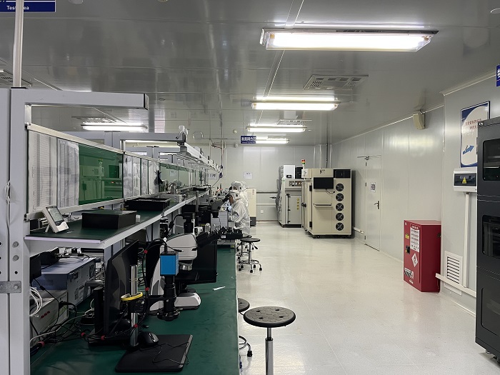 متر مربع. يمكننا إنتاج 10 آلاف قطعة من الصمام الثنائي الليزري المحوري أو الثنائي الضوئي InGaAs شهريًا، و2000 قطعة من الصمام الثنائي الليزري لمضخة الفراشة، وصمام ثنائي ليزر DFB، وثنائيات فائقة الإضاءة شهريًا، و100 قطعة من EDFA ومصدر ASE شهريًا.