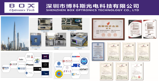 شنتشن صندوق Optronics Technology Co., Ltd.(BOX Optronics Tech) هي مؤسسة ذات تقنية عالية متخصصة في اتصالات الألياف الضوئية واستشعار الألياف الضوئية. تلتزم الشركة بتزويد العملاء بمنتجات وخدمات عالية الجودة، وأوقات استجابة أسرع للخدمة، ومساعدة العملاء على خلق قيمة أكبر. بفضل قدرات البحث والتطوير والإنتاج والمبيعات القوية، بالإضافة إلى مهندسي تطوير المنتجات ذوي الخبرة، يمكن للشركة تصميم منتجات مخصصة وفقًا لاحتياجات العملاء المختلفة. لسنوات عديدة، التزمت الشركة بالابتكار التكنولوجي، وتقديم التقنيات والمواهب المتقدمة بشكل مستمر. لقد حصلت على شهادات مؤسسة ائتمانية على مستوى AAA، وSME قائمة على التكنولوجيا، وشهادات مؤسسات وطنية عالية التقنية، واجتازت بنجاح شهادة نظام الجودة ISO9001، مع الالتزام الصارم بمتطلبات النظام واختبار جودة المنتج بدقة.